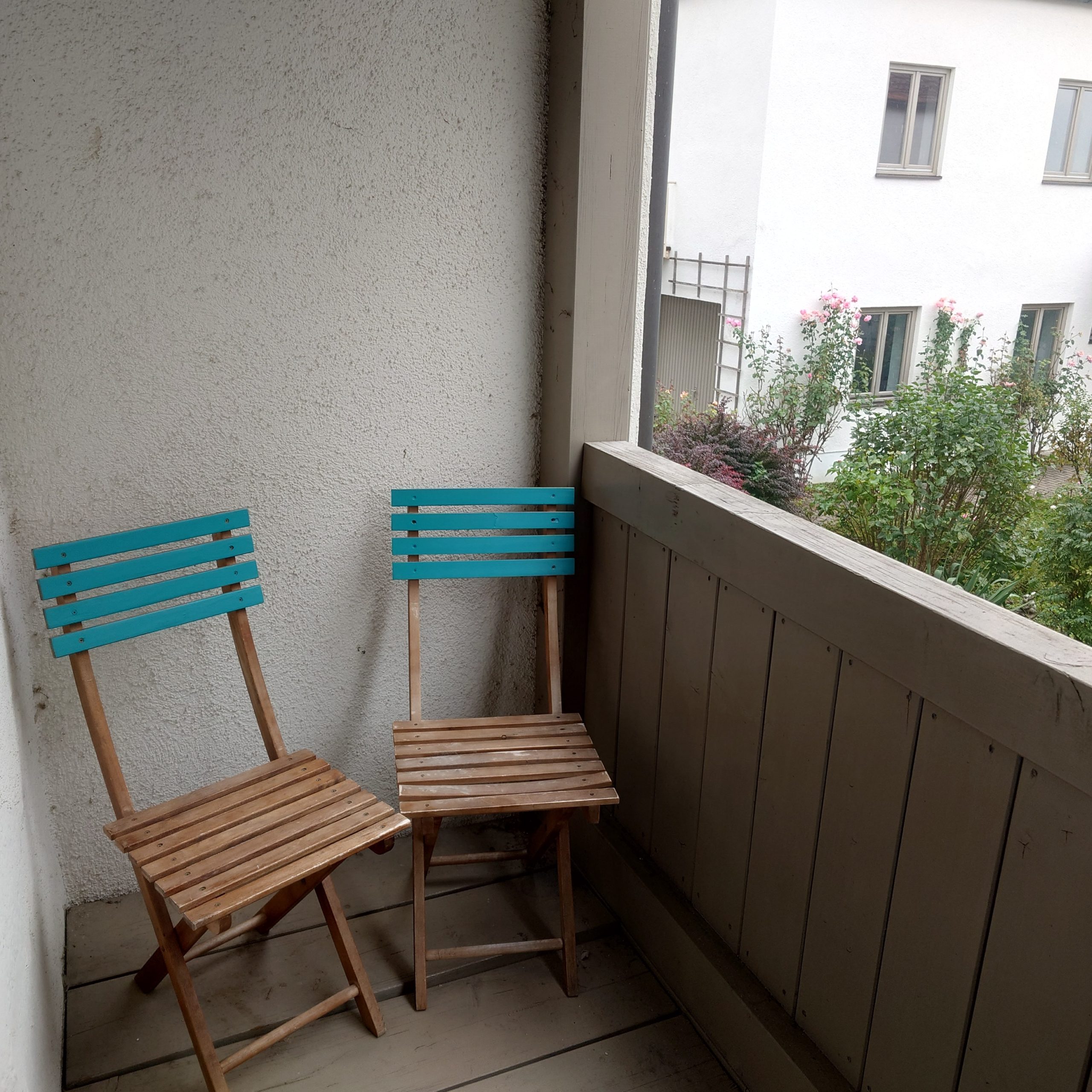 Ein bislang etwas ungeliebtes Eck in unserer Praxis hat nun auch ein bisschen Farbe bekommen: Die neuen Stühle für unseren Pausen-Balkon sind selbstverständlich auch Second-Hand und in unseren Logo-Farben aufgewertet. Ein paar Upgrades braucht es noch, bis es in der Mittagspause richtig gemütlich wird. Folge uns auf Facebook und Instagram um keine Updates zu verpassen!